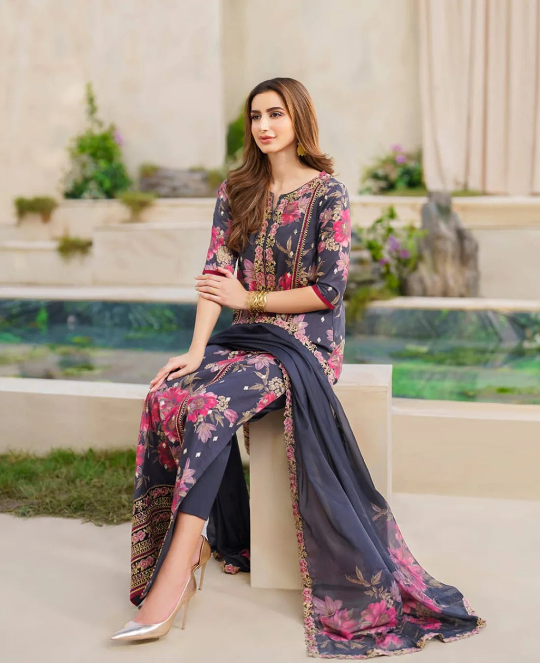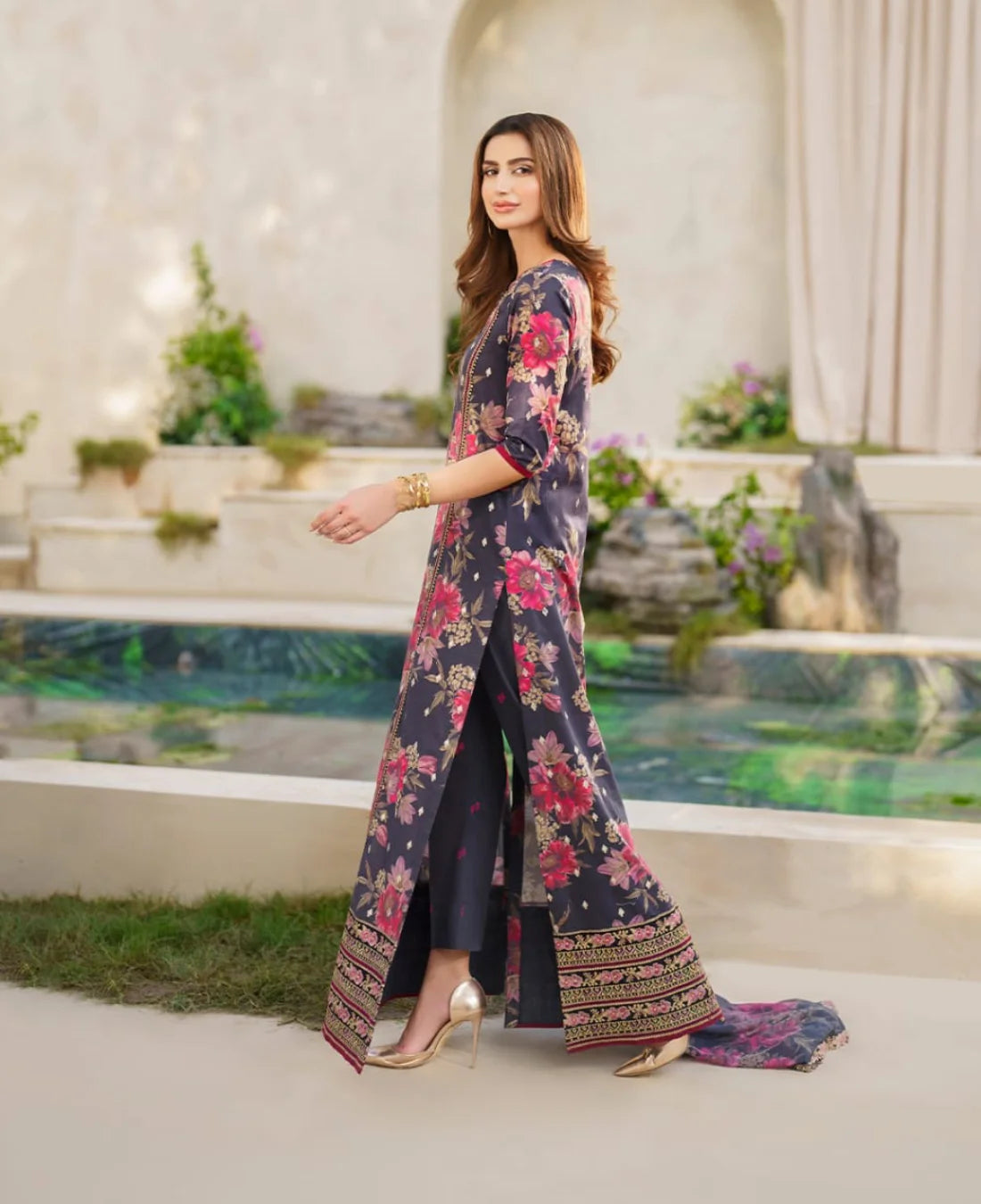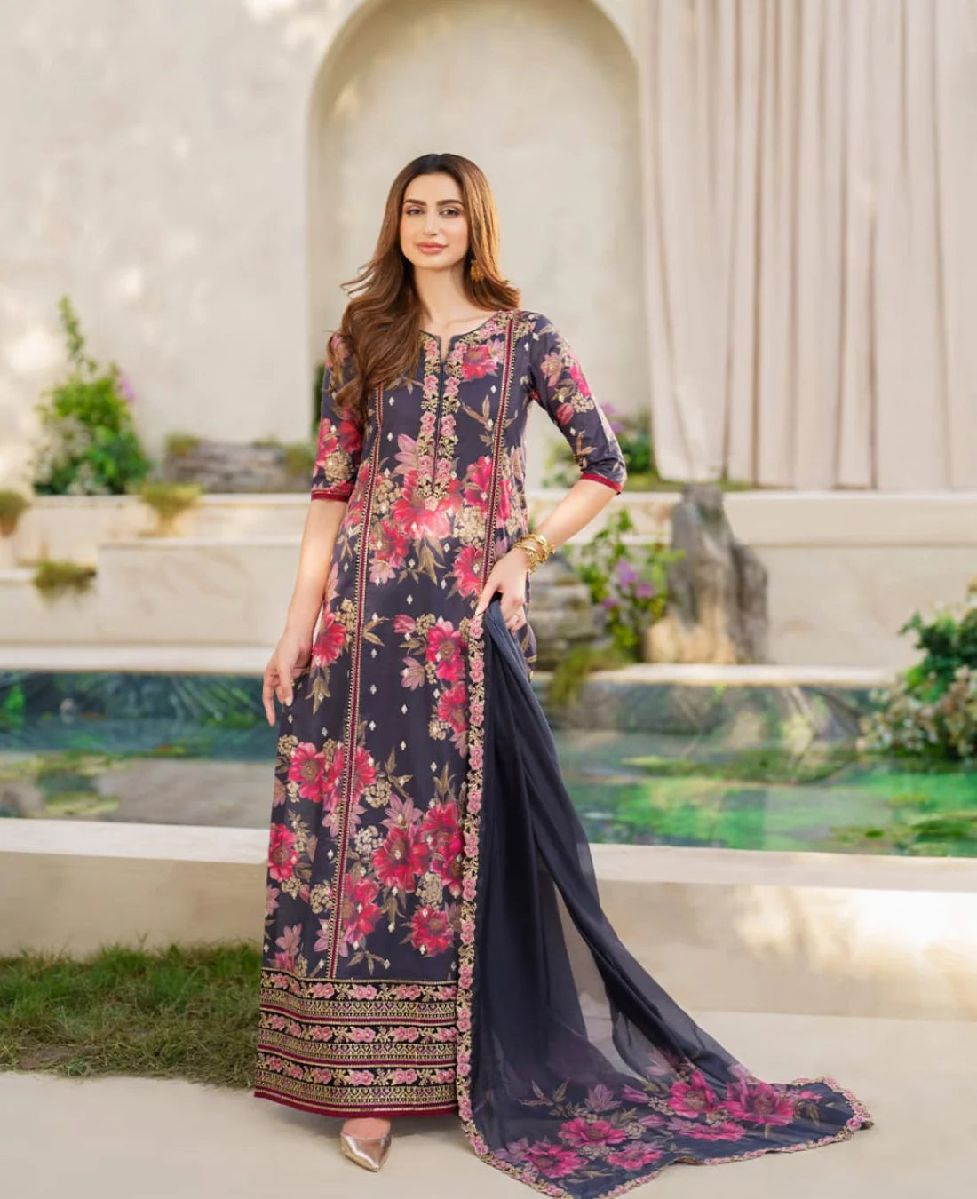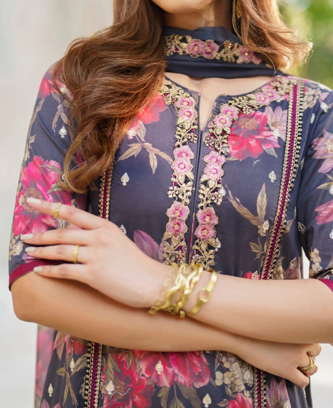 ⦁ 3 Piece suit embroidery with chiffon duppatta