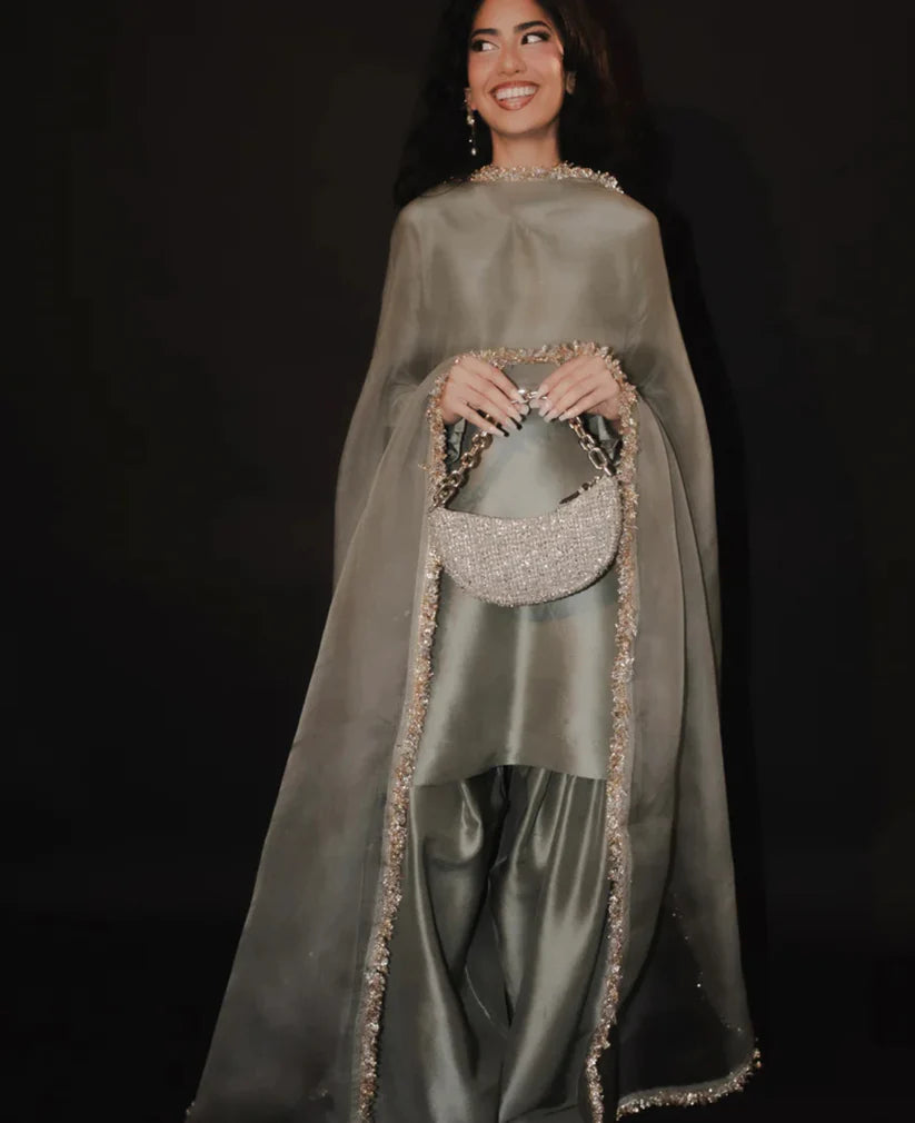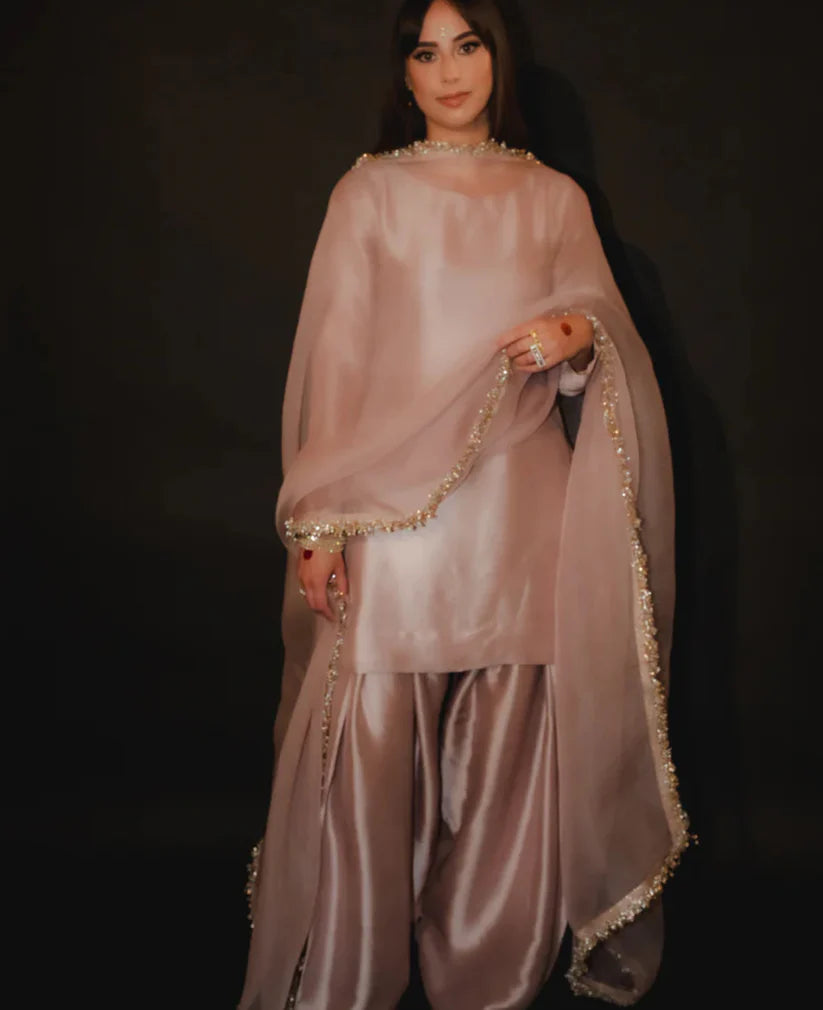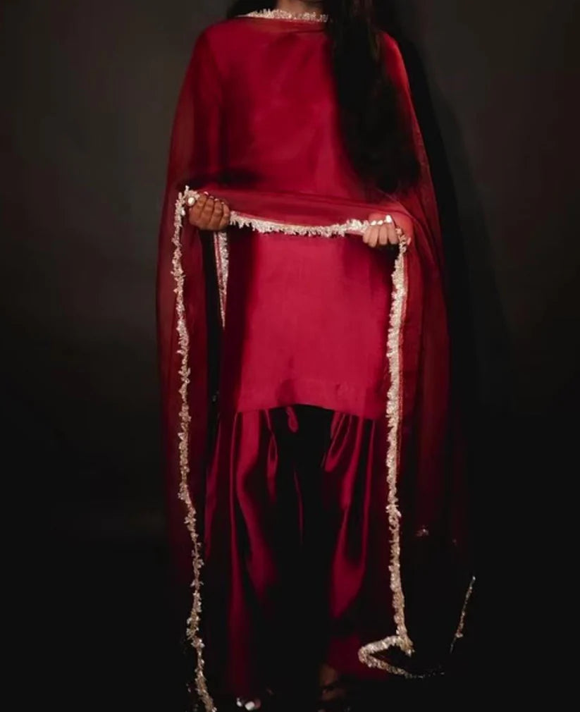 ⦁ Organza duppatta all over Indian kiran lace