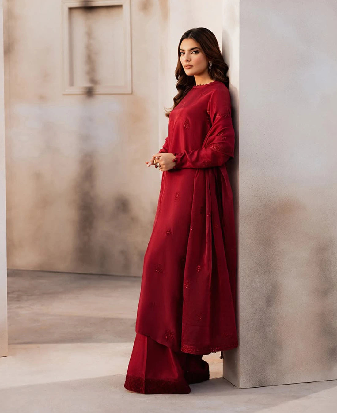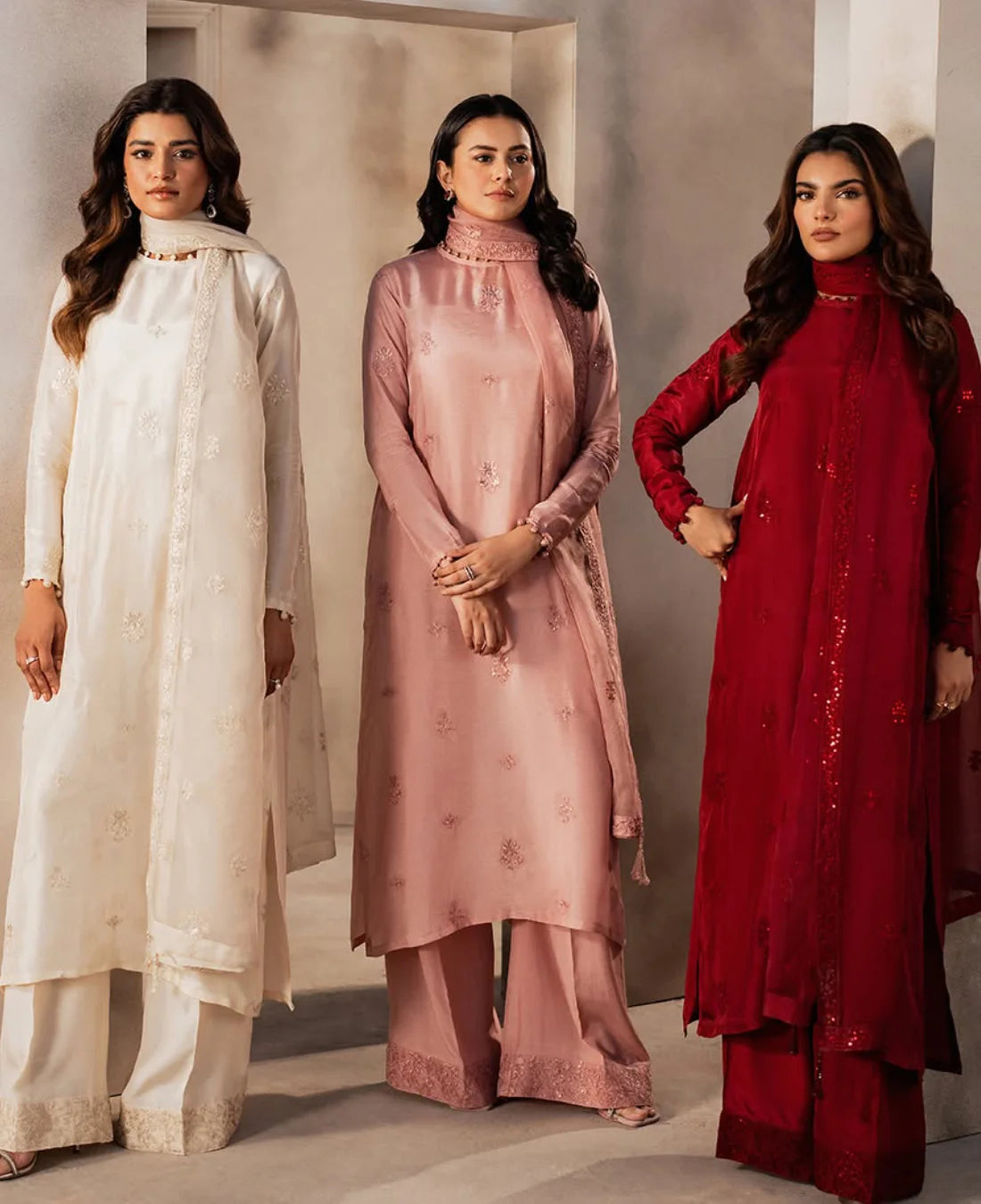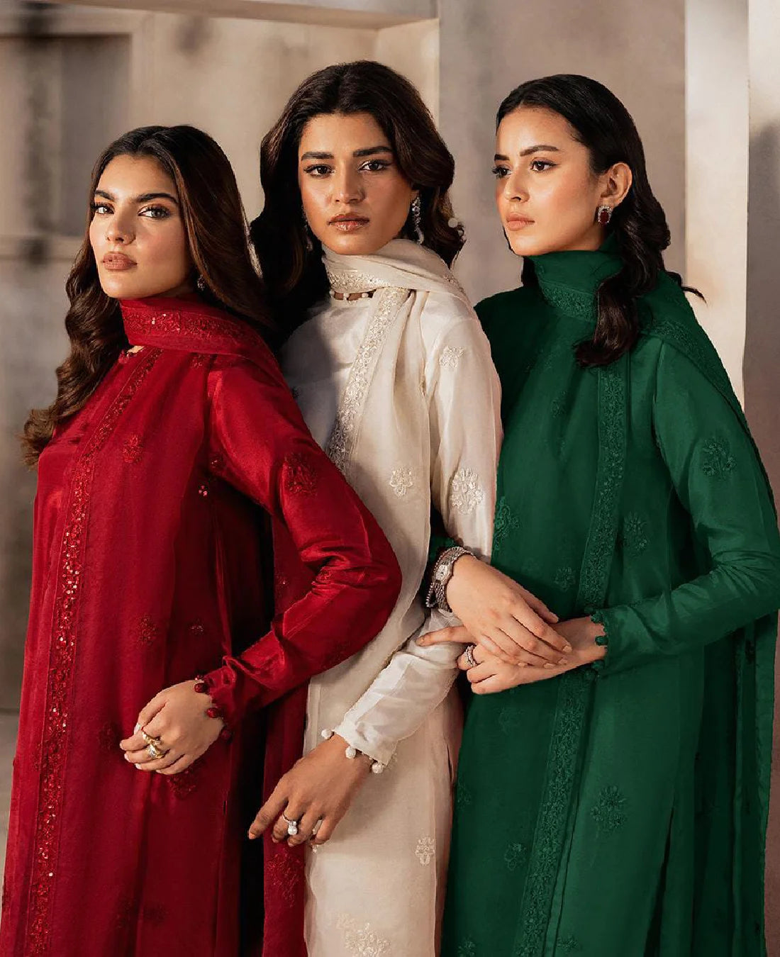 ⦁ 3 Piece Embroidered with chiffon duppatta