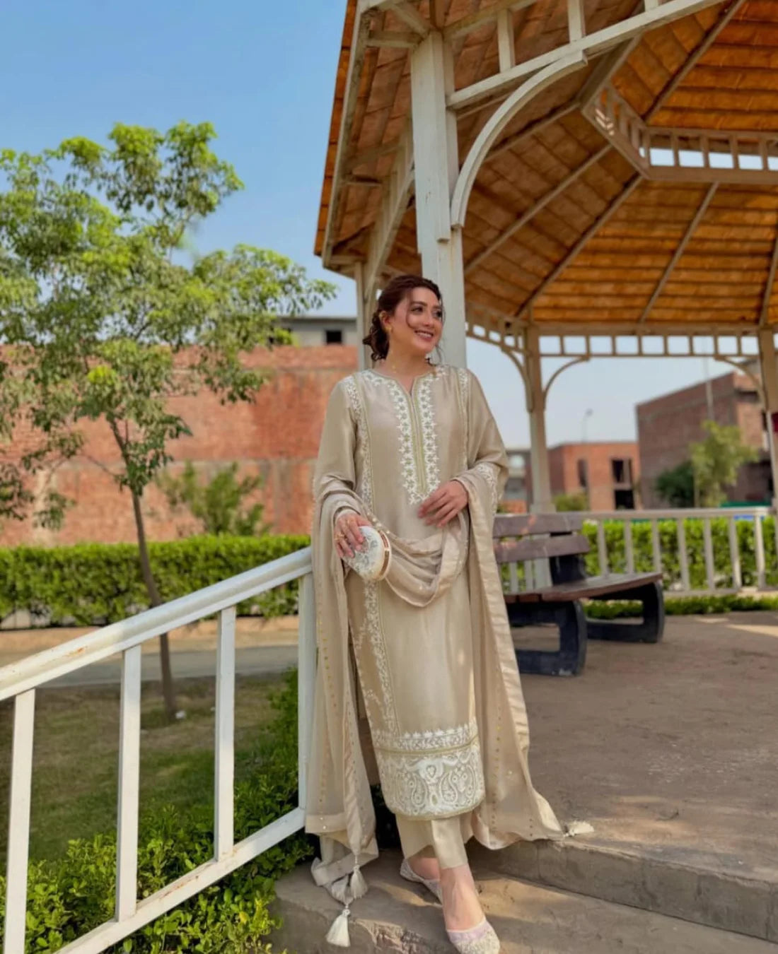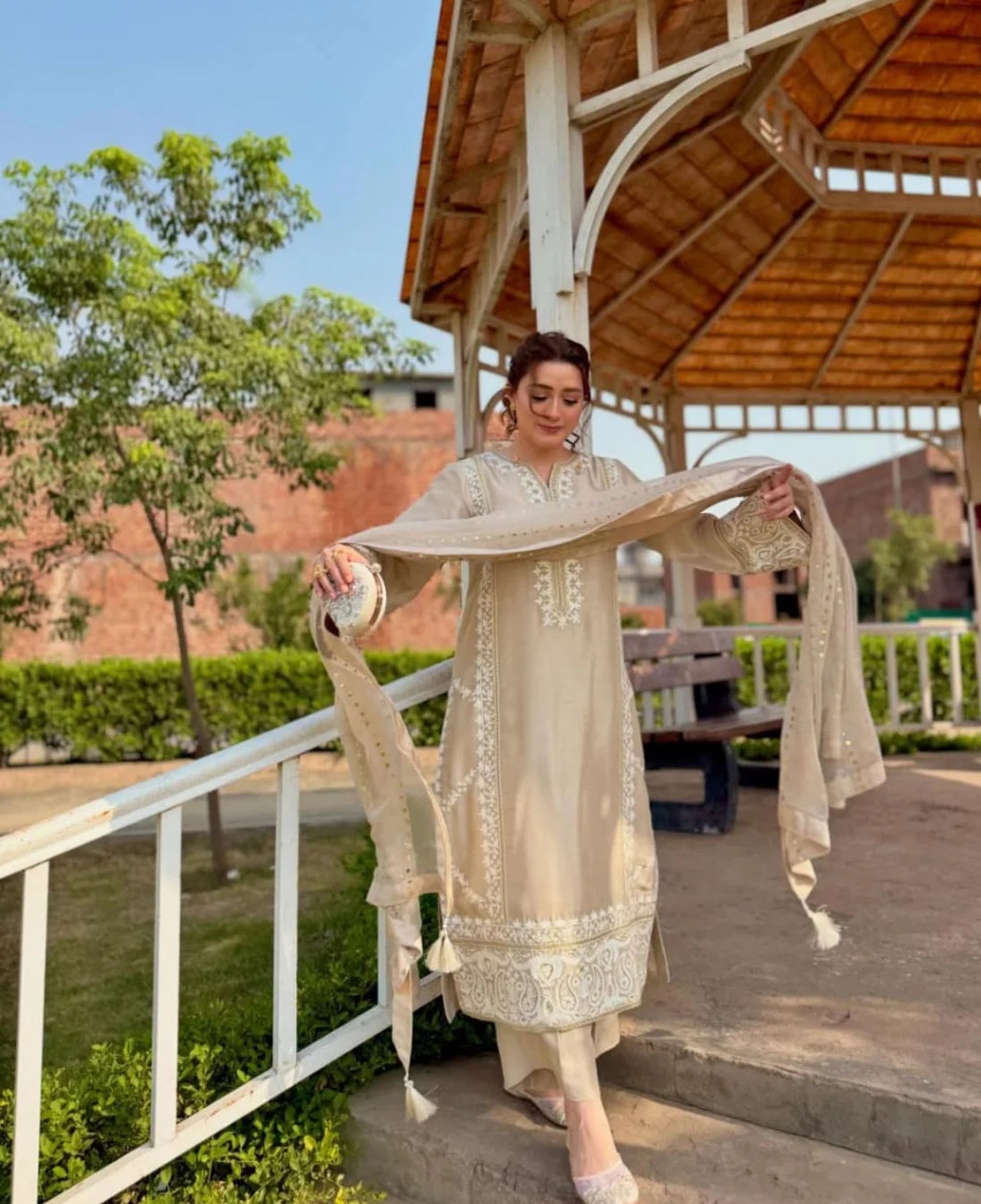 ⦁ Embroidery shirt with mukash duppatta